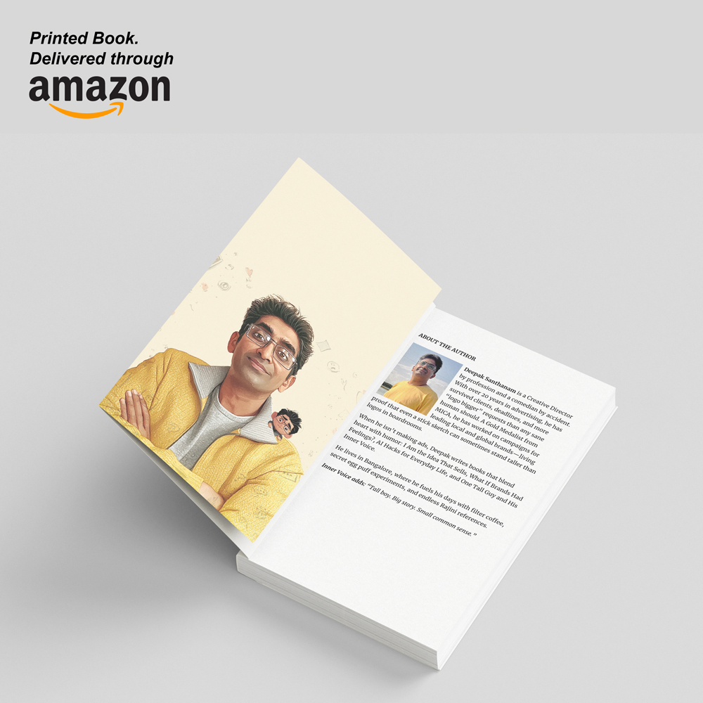 It’s a story of one man and a thousand thoughts — a quiet, comic, and heartfelt journey through the noise inside our own heads. The book explores what happens when your inner voice stops being your critic and starts becoming your companion.